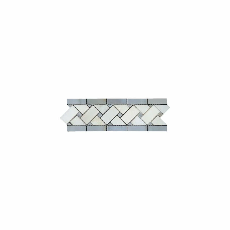 Blue Stone – Carrara White Marble 3 1/4×11 Basketweave Border