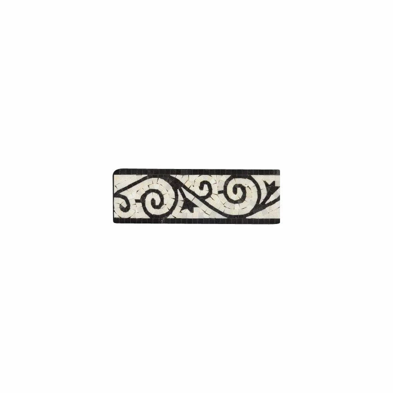 - Nero Marquina – Thassos White Polished Marble Art Border 4×12
