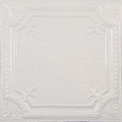 American Tin Ceilings Tin Ceiling 5-Pack Kit, 2’x2′, Creamy White Satin Pattern #28
