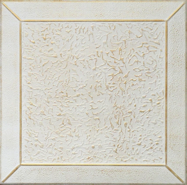 Euro-Deco 19.6″x19.6″ Styrofoam Glue Up Ceiling Tiles R27 White Satin Washed Gold