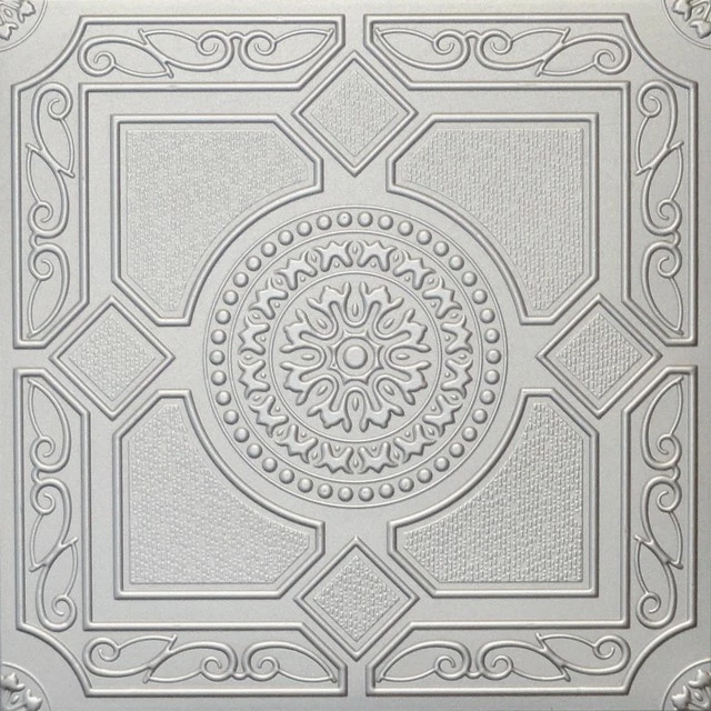 Euro-Deco 19.6″x19.6″ Styrofoam Glue Up Ceiling Tiles R30W, Silver