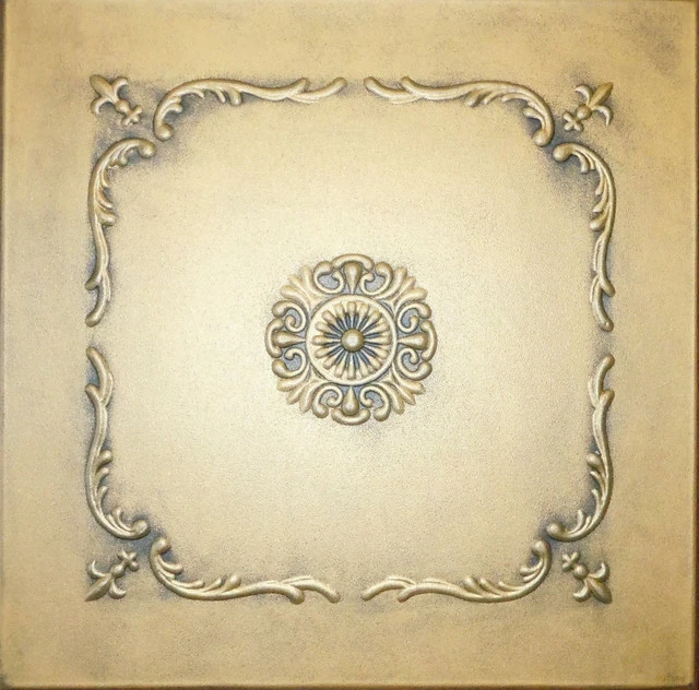 Euro-Deco 19.6″x19.6″ Styrofoam Glue Up Ceiling Tiles R43, Antique Gold