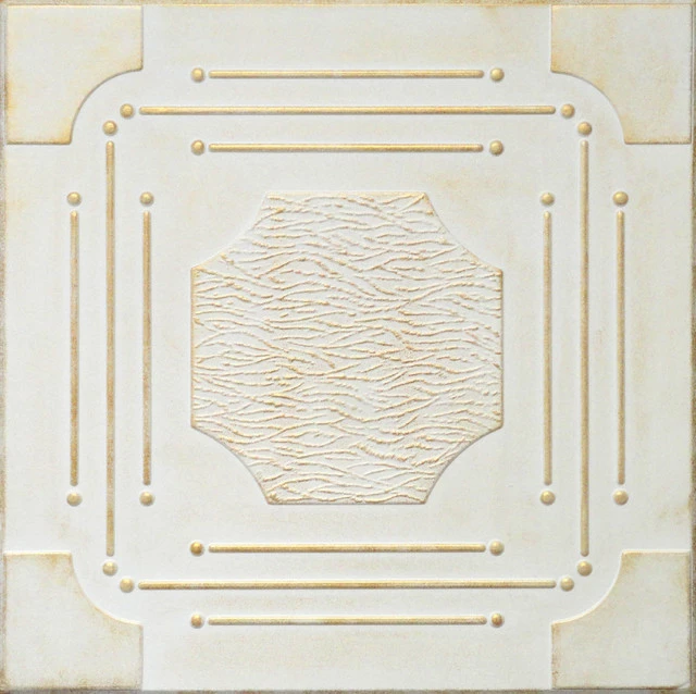 Euro-Deco 19.6″x19.6″ Styrofoam Glue Up Ceiling Tiles R46 White Satin Washed Gold