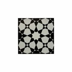 This tile was made in Mexico, but it resembles the Moroccan style. It is black and white and the patterns it creates are stunning. It delivers an exquisite looking which brings that back-splash into a focal point. Shown in the second picture is a pattern where this tile is used in bundles of four in a diamond-shaped pattern, aligned in a central position which is bordered by Yellow Talavera Clay Pencil in a stunning display.