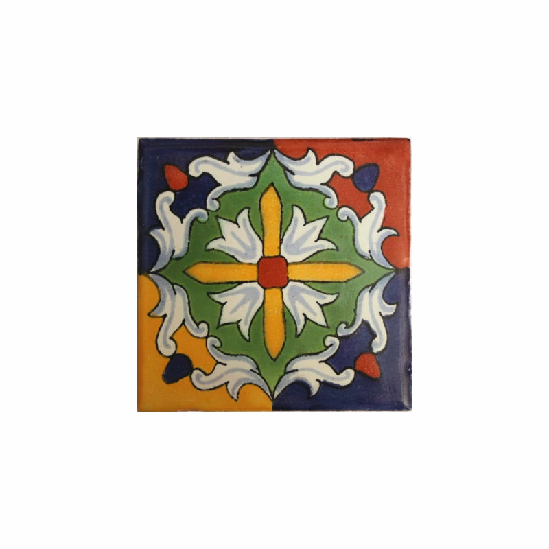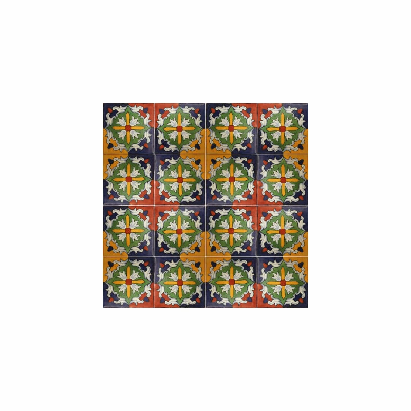 This Talavera ceramic tile is hand-painted in a beautiful pattern using a rich color combination: cobalt blue, terracotta, yellow, orange, green, light blue and white. In the manufacturing process the whole tile is painted in white as a first step and then the rest of the tile is painted on top of the white one. This tile can be used as an accent piece or as a decorative wall by itself as shown in the second picture.This tile is special for small patches or entire wall decoration, as you can see from the pattern found in the last picture.