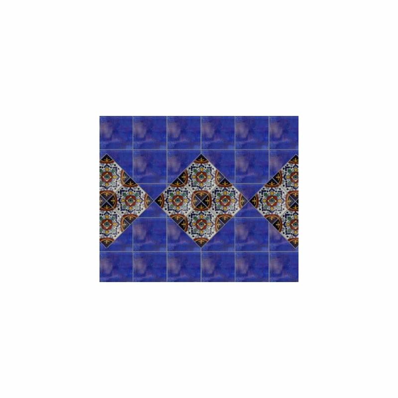 This Talavera clay tile has the four corners hand-painted in blue color surrounded by orange and red lines. The central part is a very rich combination of color: Blue, red, orange and green combination to create a unique look! The pictures show the patterns when four or more are put together and when a single tile line is put together for you to appreciate it better.