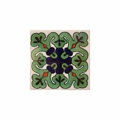 The pattern in this ceramic tile is mostly green. It is hand-painted, this means that no two tiles are the same! There might be small differences in size, weight and even the color. These changes might also happen from shipment to shipment, so it is important to order the whole set of tiles for a given project at the same time. Second picture shows a pattern with 9 tiles put together.