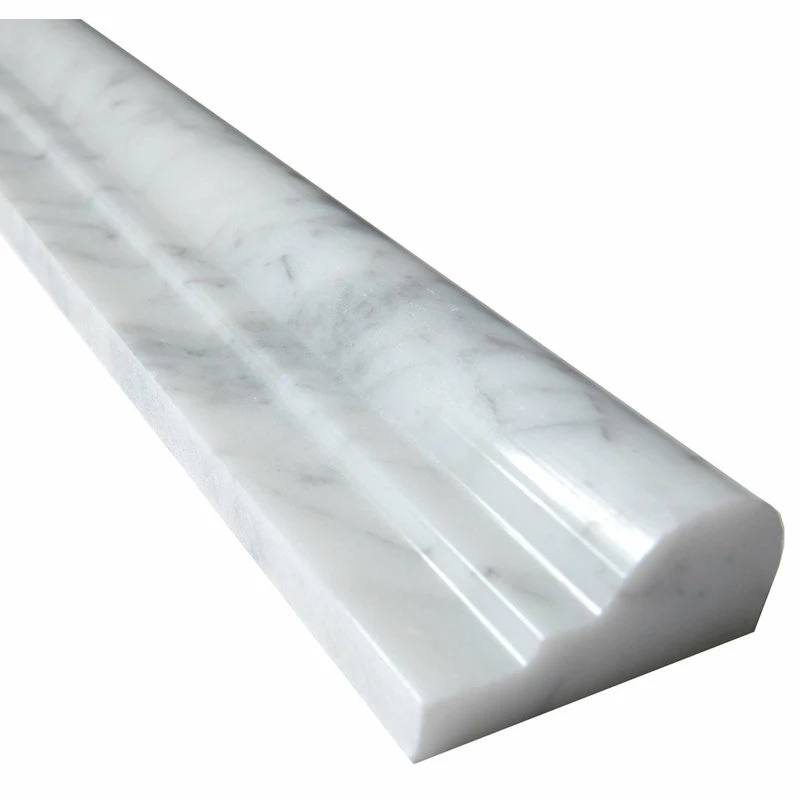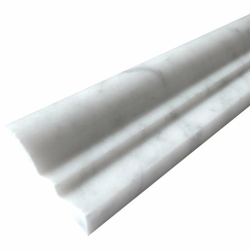 Fancy Design Group Oriental White Honed Marble Wave Border With Blue-Gray Dots