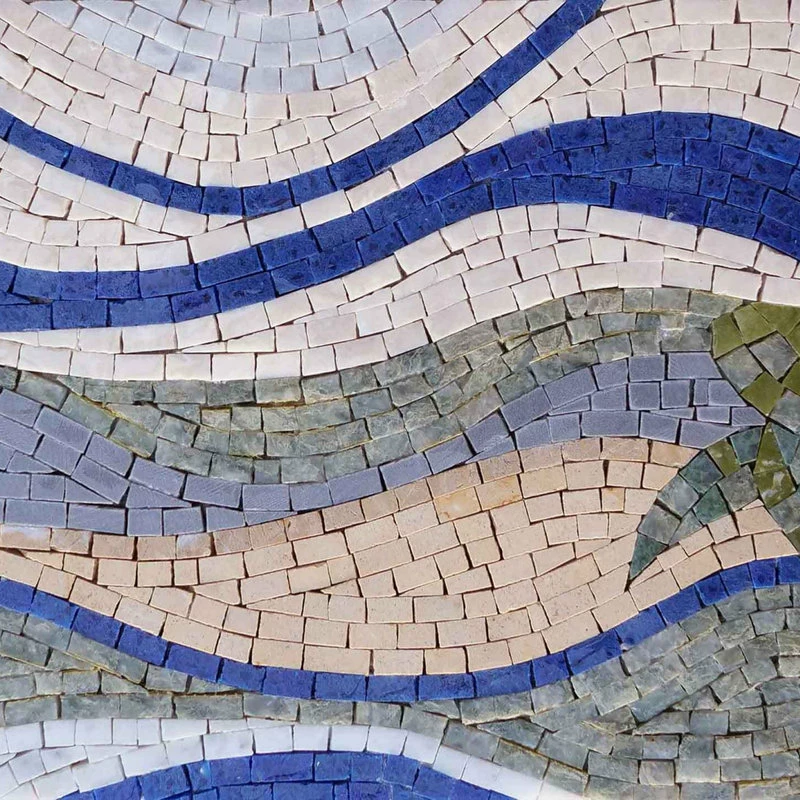 Mozaico Mosaic Artwork – Patterned Waves & Turtle
