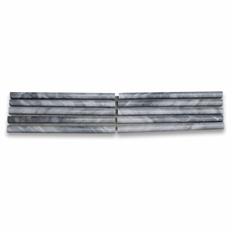 Premium Grade Bardiglio Gray Marble Pencil Liner tiles. Italian Gray Bardiglio Marble Polished 3/4 x 12 Bullnose Trim Wall & Floor Tiles are perfect for any interior/exterior projects. The 3/4×12 Dark Grey Marble Bardiglio Carrara Marble Pencil Molding tiles can be used for a kitchen backsplash, bathroom flooring, shower surround, dining room, hall, etc. Our Premium Bardiglio Grey Pencil Liner Moulding tiles with a large selection of coordinating products is available and includes hexagon, herringbone, basketweave mosaics, 12×12, 18×18, 24×24, subway tiles, borders, baseboards, and more.
