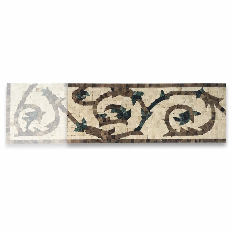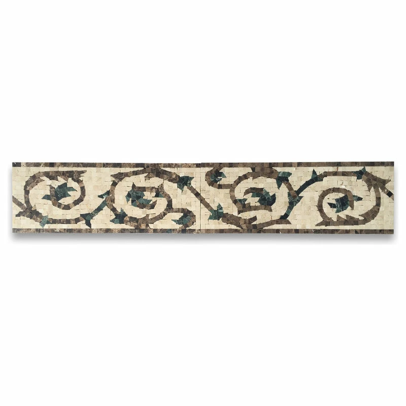 Stone Center Online Marble Mosaic Border Listello Tile Floral Emperador 5.9×15.7 Polished, 1 Piece