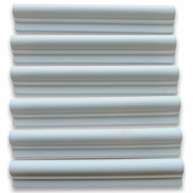 Premium Grade White Thassos Marble Chair Rail Bullnose tiles. Greek Thassos White Pure White Marble Honed 2 x 12 Chair Rail Bullnose Wall & Floor Tiles are perfect for any interior/exterior projects. The 2×12 Thassos White Marble Chair Rail Bullnose can be used for a kitchen backsplash, bathroom flooring, shower surround, window sill, dining room, hall, etc. Our Premium White Thassos Marble Chair Rail Bullnose tiles with a large selection of coordinating products is available and includes hexagon, herringbone, basketweave mosaics, 12×12, 18×18, 24×24, subway tiles, borders, Chair Rail Bullnoses, and more.