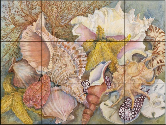 Our huge selection of shell tiles and pictures of shells on tiles make planning your bathroom tile project easy. We have starfish tiles, tiles with sea shells, tiles with beach scenes. Mix and match our variety of shell tiles to create a truly unique and custom tile project.